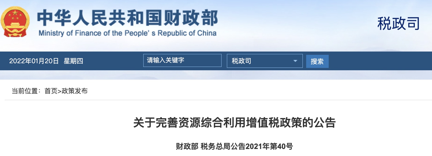 關(guān)于完善資源綜合利用增值稅政策的公告財政部稅務總局公告2021年第40號為推動資源綜合利用行業(yè)持續(xù)健康發(fā)展,現(xiàn)將有關(guān)增值稅政策公告如下:一、從事再生資源回收的增...